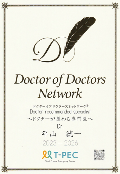 平山院長が【ドクターが薦める専門医】に認定されました!