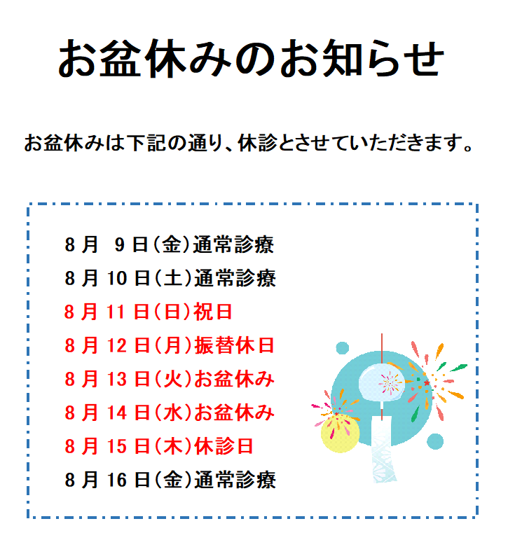 2024お盆休みのお知らせ