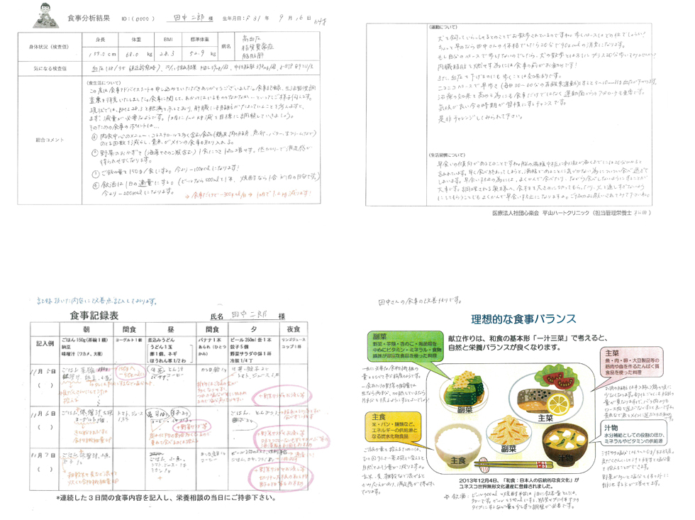 管理栄養士が食事記録表と生活習慣調査票、各検査結果をもとに診断。