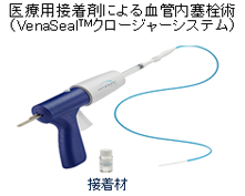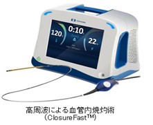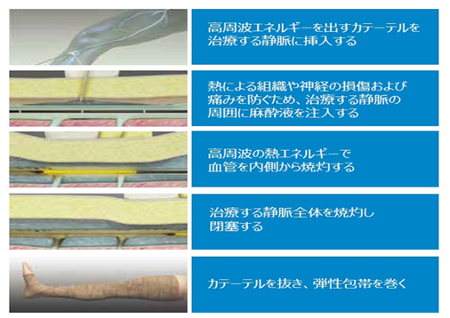 静脈を焼いてふさぐ治療です。細い管(カテーテル)を病気になった静脈の中に入れて、